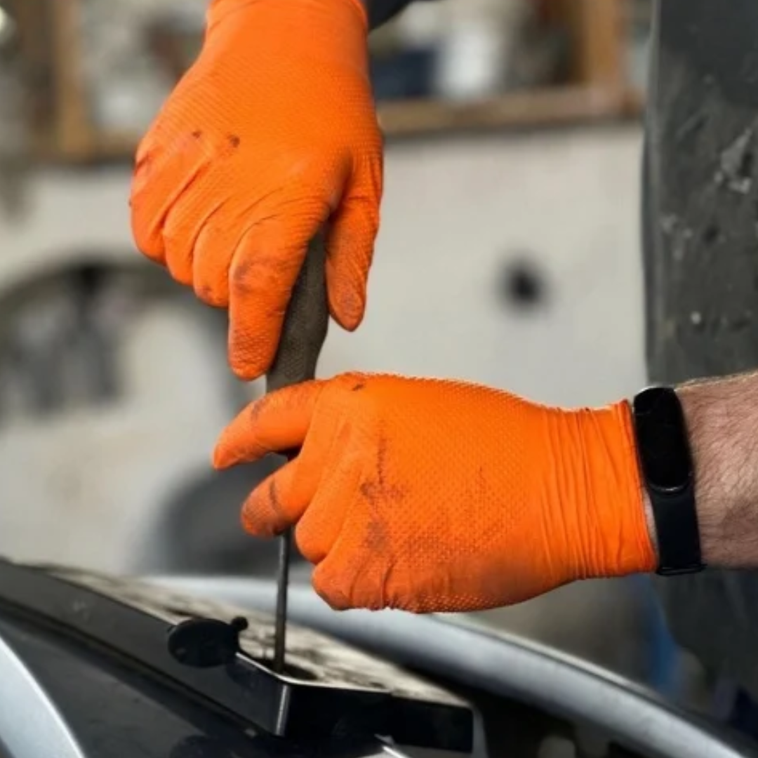 Manusi Nitril Gofrate GripZzly, Rezistente la Chimicale si Uleiuri, 50 buc Manusile de nitril GripZzly cu textura gofrata sunt create pentru a oferi protectie excelenta in conditii de lucru dificile. Ideale pentru mecanici auto, industria alimentara si alte domenii profesionale, aceste manusi asigura o prindere ferma si protectie impotriva contaminantilor. Manusile sunt rezistente la chimicale, uleiuri, grasimi, bacterii, fungi si virusuri, fiind ideale pentru medii de lucru solicitante. Fara pudra, fara latex si fara thiuram, manusile GripZzly portocalii sunt sigure pentru piele si au agrement pentru contact alimentar. Fabricate in conformitate cu standardele ASTM F 1671 si EN ISO 374-5, acestea ofera o protectie eficienta si sunt compatibile cu utilizarea pe ecrane tactile. Structura: Gofrata pentru aderenta superioara Material: Nitril, fara pudra, fara latex, fara thiuram Standarde: ASTM F 1671, EN ISO 374-5 Rezistenta: Chimicale, grasimi, uleiuri, bacterii, fungi, virusuri Caracteristici: Ambidextre, utilizabile pe ecrane tactile Ambalare: 50 bucati/cutie Locatii de utilizare: Mecanici auto Industria alimentara Fabrici si depozite Spitale si clinici Saloane de infrumusetare Curatenie profesionala Laboratoare si centre de cercetare Manusile de protectie GripZzly portocalii ofera un nivel ridicat de aderenta si protectie, fiind o alegere ideala pentru siguranta mainilor in medii profesionale dificile.